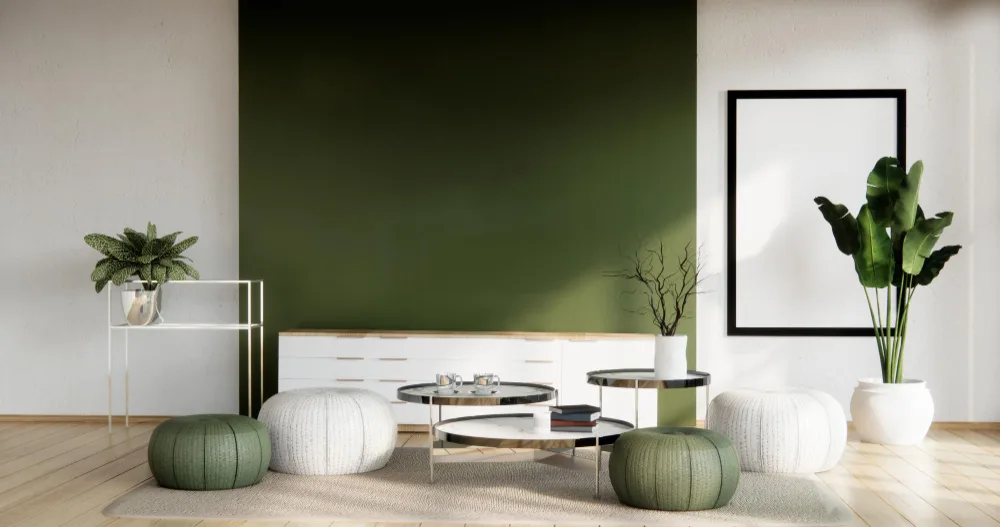 2026-aisiais madingi šilti tonai: molio, smėlio, alyvuogių žalia, švelni ruda, o taip pat sodrūs akcentai – tamsiai raudona, samanų žalia. Šios spalvos suteikia erdvei jaukumo, o kartu atrodo solidžiai ir moderniai.